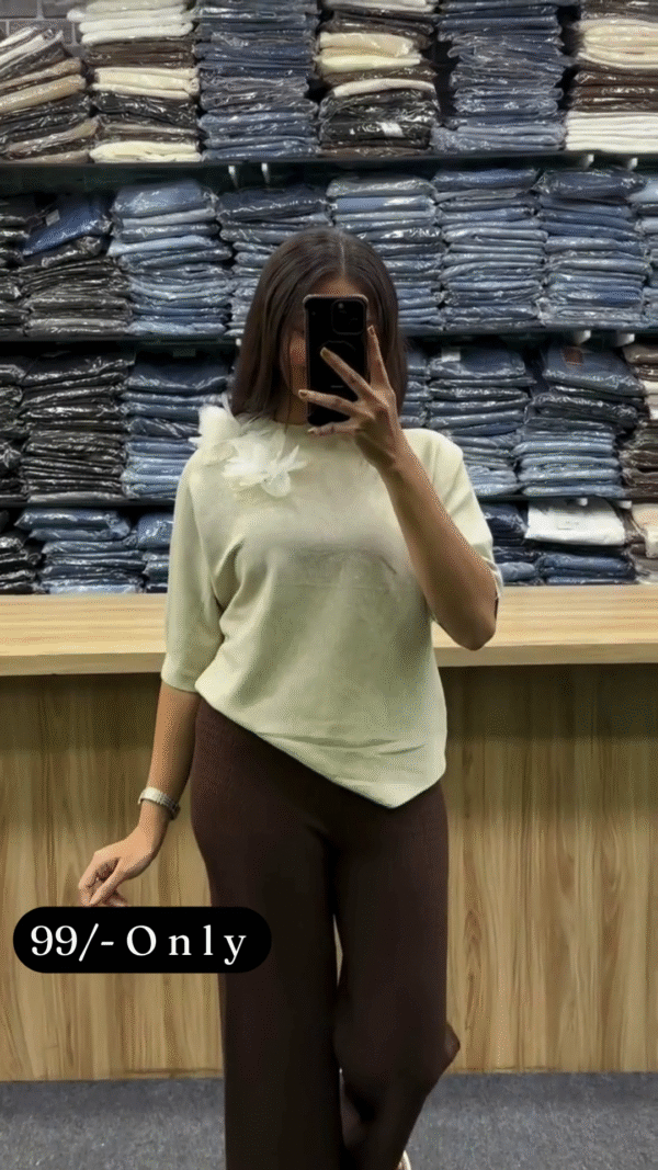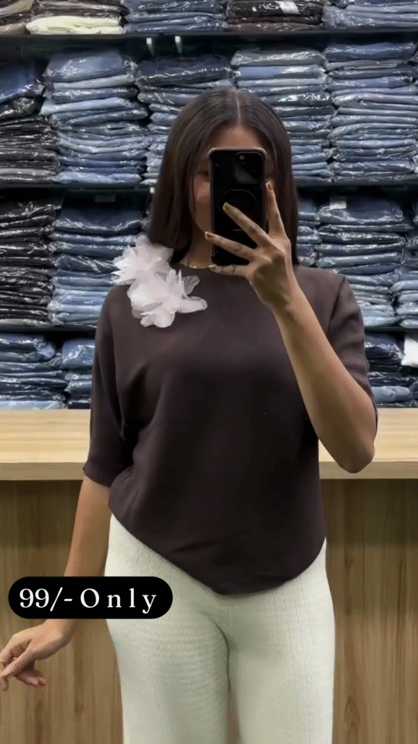 Perfect for office wear, college days, parties, or casual outings — this versatile top blends simplicity with subtle glamour. The smooth, breathable material ensures all-day comfort, while the structured silhouette enhances your natural shape. The floral shoulder embellishment adds a feminine touch, making it ideal for both minimalists and trendsetters.