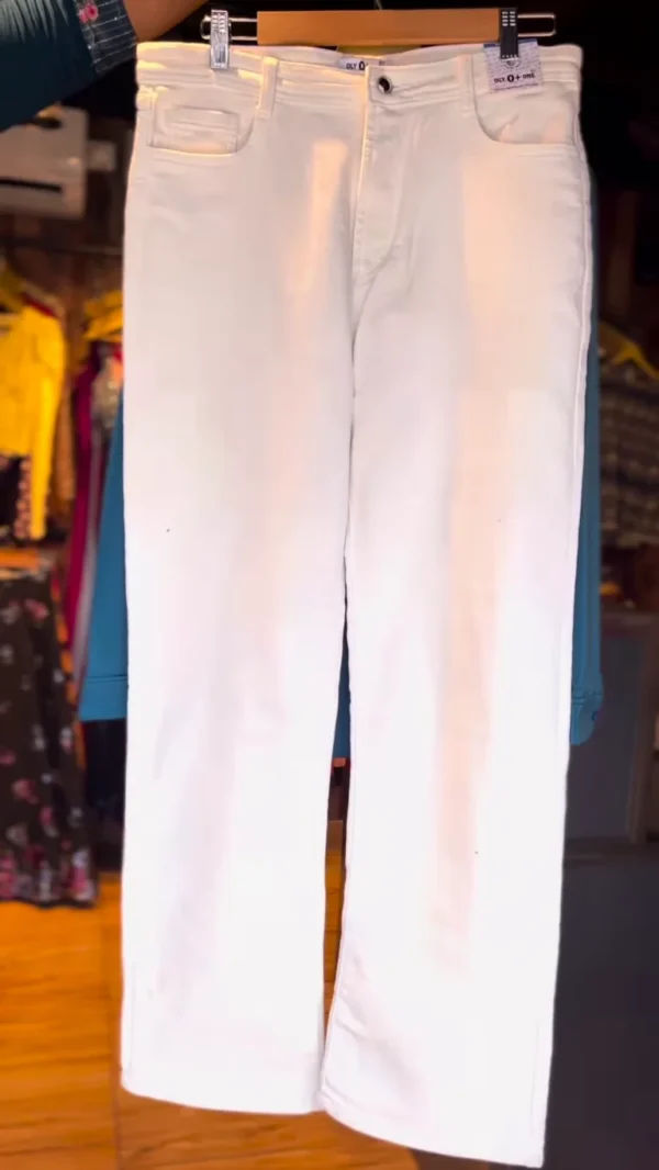 ✔ Bottom Wear: High-waisted white wide-leg pants with an elastic waistband for ease of wear