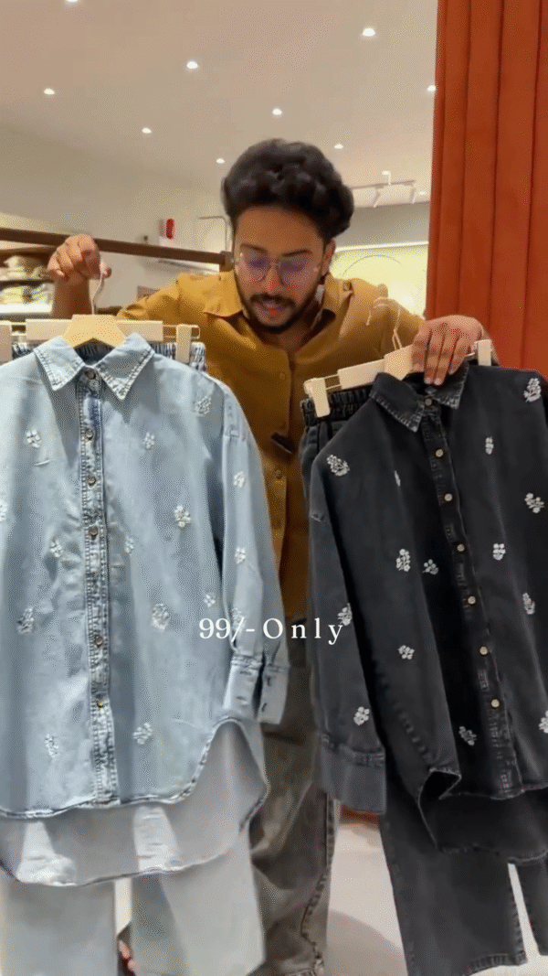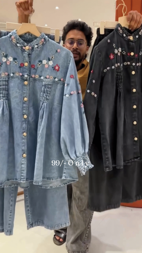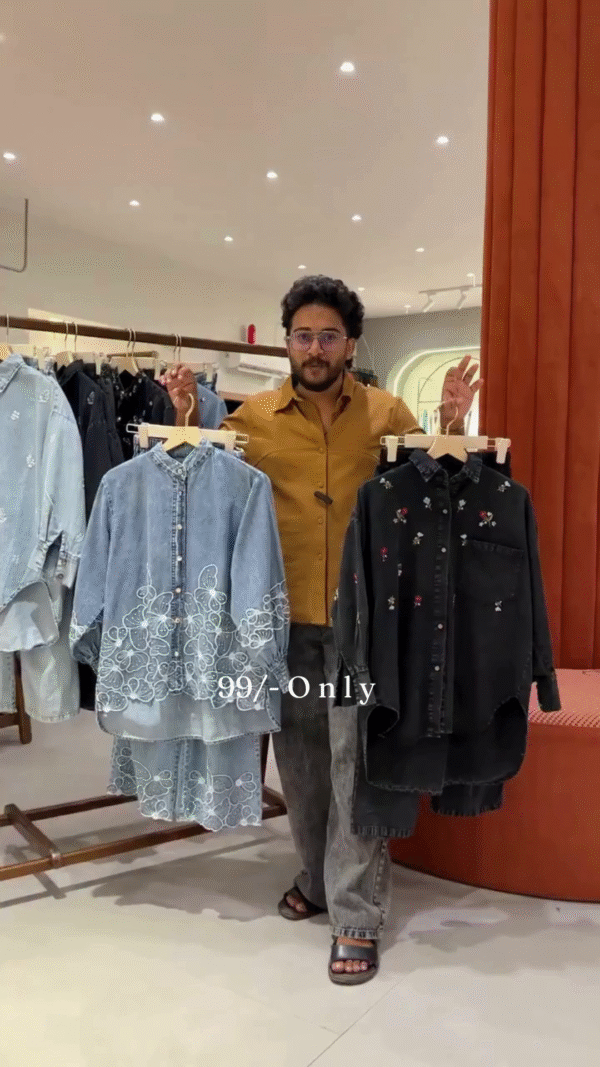 Top me sleek design aur flattering fit hai, jabki bottom me perfect stretch aur trendy silhouette milta hai. Together, ye dono create karte hain ek head-to-toe denim co-ord vibe, jo har occasion pe classy lagta hai – be it a café date, college day, ya casual hangout. ☕💙